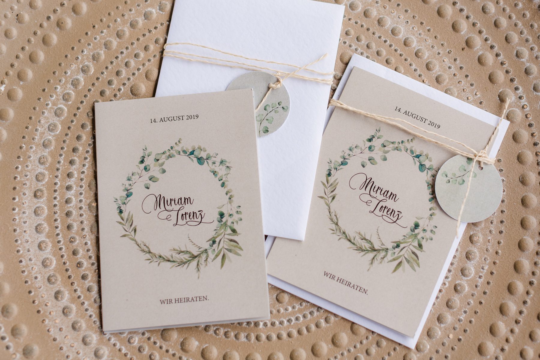 Für Miri & Lorenz durfte ich die komplette Serie für die Vintage-Hochzeit gestalten. Wir haben uns für Kraftpapier entschieden mit wundervoll dezenten, stilvollen Elementen aus Eukalyptus und einer schwungvollen handlettering Schrift. Und jetzt wo ich die beiden kenne: das hat alles soooo toll zu ihnen gepasst.
